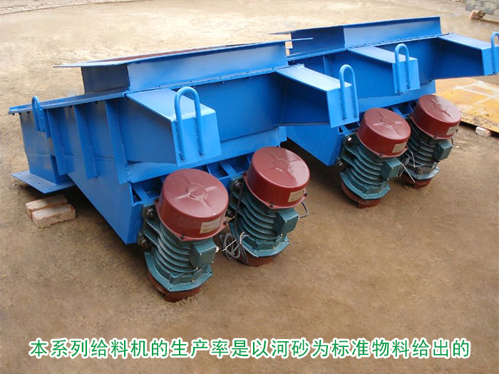本系列電機振動給料機的生產率是以河砂為標準物料給出的(堆比重為1.6T/m3)。當物料堆比重大于1.6T/m3時,其產量可按額定值選?。划斘锪系亩驯戎卦?.2~1.6T/m3時,其產量可達到額定產量的0.9~1.0倍。當物料堆比重在0.8~1.2T/m3時其產量可過到額定值的0.8~0.9倍。物料堆比重小于1.6T/m3時,須適當增加料層厚度,以提高產量。對于振動給料機難于輸送的物料(如滑石粉、鈦白粉、白泥、面粉、粘土等),以及含水量較大的親水性物料,則應根據試驗確定產量。必要時將槽體適當傾斜安裝(一般向下傾斜10~15度),以增加給料量。