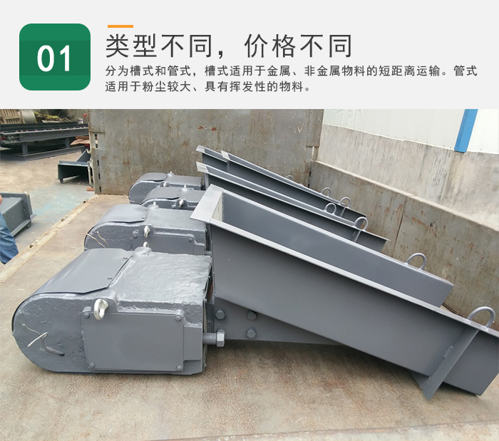 電磁振動給料機分為槽式和管式,槽式電磁振動給料機適用于金屬、非金屬物料的短距離運輸,管式電磁振動給料機適用于粉塵較大、具有揮發性的物料,以及300℃以下的高溫物料,還可以將幾節輸送管連接起來同步輸送。不同類型的電磁振動給料機價格是不同的,用戶需要根據篩分物料及實際需求進行選擇。