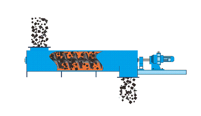 螺旋喂料機旋轉的螺旋葉片將物料推移而進行螺旋輸送機輸送,使物料不與螺旋輸送機葉片一起旋轉的力是物料自身重量和螺旋輸送機機殼對物料的摩擦阻力。螺旋輸送機旋轉軸上焊的螺旋葉片,葉片的面型根據輸送物料的不同有實體面型、帶式面型、葉片面型等型式。螺旋輸送機的螺旋軸在物料運動方向的終端有止推軸承以隨物料給螺旋的軸向反力,在機長較長時,應加中間吊掛軸承.